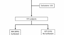 Preterm neonates born at 26–32 weeks’ gestation and admitted to any of the participating NICUs were eligible for enrolment if they developed clinical features of RDS (fast breathing or chest retractions) within 6 h of birth and fulfilled criteria to receive surfactant therapy within 24 h of birth. The criteria for SRT were any one of the two: (i) FiO2 requirement 40% or higher while on continuous positive airway pressure (CPAP) to maintain oxygen saturation between 90 and 95%, (ii) need for intubation and mechanical ventilation because of CPAP failure or severe respiratory distress. Chest X-ray was not mandated prior to SRT. Exclusion criteria were (i) significant perinatal asphyxia, defined as need for chest compressions during resuscitation or metabolic acidosis (pH < 7.0) in umbilical arterial blood gas or arterial blood gas obtained within 1 h of life, (ii) major congenital anomalies or known chromosomal aberrations, (iii) receipt of prophylactic surfactant, (iv) clinical evidence of pulmonary air leak or pulmonary hemorrhage prior to enrolment, and (v) shock requiring vasopressor support prior to enrolment. Parents of potentially eligible neonates were approached both before and after birth, and written informed consent was obtained from parents or legally acceptable representative prior to enrolment.