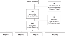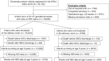 The authors would like to acknowledge Dr. Michele Walsh for her intellectual contribution to the conception of the study. The National Institutes of Health and the Eunice Kennedy Shriver National Institute of Child Health and Human Development (NICHD) provided grant support for the Neonatal Research Network for the Generic Database and the Follow-up Study. NICHD staff provided input into the study design, conduct, analysis, and manuscript drafting; NCATS cooperative agreements provided infrastructure support to the NRN. While NICHD staff had input into the study design, conduct, analysis, and manuscript drafting, the comments and views of the authors do not necessarily represent the views of NICHD, the National Institutes of Health, the Department of Health and Human Services, or the U.S. Government. Data collected at participating sites of the NICHD Neonatal Research Network were transmitted to RTI International, the data coordinating center (DCC) for the network, which stored, managed and analyzed the data included in this study. On behalf of the NRN, RTI International had full access to all the data in the study and take responsibility for the integrity of the data and accuracy of the data analysis. The content is solely the responsibility of the authors and does not necessarily represent the official views of the National Institutes of Health. We are indebted to our medical and nursing colleagues and the infants and their parents who agreed to take part in this study. The following investigators, in addition to those listed as authors, participated in this study: NRN Steering Committee Chair: Richard A. Polin, MD, Division of Neonatology, College of Physicians and Surgeons, Columbia University, (2011–present). Alpert Medical School of Brown University and Women & Infants Hospital of Rhode Island (UG1 HD27904)—Abbot R. Laptook, MD; Martin Keszler, MD; Betty R. Vohr, MD; Angelita M. Hensman, PhD RNC-NIC; Elisa Vieira, BSN RN; Lucille St. Pierre, BS; Robert T. Burke, MD MPH; Barbara Alksninis, RNC PNP; Andrea Knoll; Mary L. Keszler, MD; Teresa M. Leach, MEd CAES; Elisabeth C. McGowan, MD; Victoria E. Watson, MS CAS. Case Western Reserve University, Rainbow Babies & Children’s Hospital (UG1 HD21364)—Nancy S. Newman, RN; Deanne E. Wilson-Costello, MD; Bonnie S. Siner, RN; Elizabeth Roth, MS. Children’s Mercy Hospital (UG1 HD68284)—William E. Truog, MD; Eugenia K. Pallotto, MD MSCE; Howard W. Kilbride MD; Cheri Gauldin, RN BS CCRC; Anne Holmes RN MSN MBA-HCM CCRC; Kathy Johnson RN, CCRC; Allison Scott, BSN RNC-NIC; Prabhu S. Parimi, MD; Lisa Gaetano, RN MSN. Cincinnati Children’s Hospital Medical Center, University Hospital, and Good Samaritan Hospital (UG1 HD27853, UL1 TR77)—Stephanie L. Merhar, MD MS; Brenda B. Poindexter, MD MS; Kurt Schibler, MD; Kimberly Yolton, PhD; Tanya E. Cahill, MD; Teresa L. Gratton, PA; Cathy Grisby, BSN CCRC; Devan Hayes, BS; Kristin Kirker, CRC; David Russell, JD; Sara Stacey, BA; Sandra Wuertz, RN BSN CLC. Duke University School of Medicine, University Hospital, University of North Carolina, Duke Regional Hospital, and WakeMed Health & Hospitals (UG1 HD40492, UL1 TR1117)—C. Michael Cotten, MD MHS; Ronald N. Goldberg, MD; Ricki F. Goldstein, MD; William F. Malcolm, MD; Patricia L. Ashley, MD; Deesha Mago-Shah, MD; Joanne Finkle, RN JD; Kimberley A. Fisher, PhD FNP-BC IBCLC; Kathryn E. Gustafson, PhD; Matthew M. Laughon, MD MPH; Carl L. Bose, MD; Janice Bernhardt, MS RN; Gennie Bose, RN; Janice Wereszczak, CPNP-AC/PC; Diane Warner, MD MPH; Jennifer Talbert, MS RN; Stephen D. Kicklighter, MD; Alexandra Bentley, MD; Laura Edwards, MD; Ginger Rhodes-Ryan, ARNP MSN, NNP-BC; Donna White, RN-BC BSN. Emory University, Children’s Healthcare of Atlanta, Grady Memorial Hospital, and Emory University Hospital Midtown (UG1 HD27851, UL1 TR454)—Ravi M. Patel, MD MSc; David P. Carlton, MD; Ira Adams-Chapman, MD (deceased); Ellen C. Hale, BS RN CCRC; Yvonne Loggins, RN; Diane Bottcher, RN; Sheena L. Carter, PhD; Salathiel Kendrick-Allwood, MD; Maureen Mulligan LaRossa, RN; Judith Laursen, RN; Colleen Mackie, RRT; Amy Sanders, PsyD; Gloria Smikle, PNP; Lynn Wineski, NNP. Eunice Kennedy Shriver National Institute of Child Health and Human Development—Andrew A. Bremer, MD PhD; Rosemary D. Higgins, MD; Stephanie Wilson Archer, MA. Indiana University, University Hospital, Methodist Hospital, Riley Hospital for Children, and Wishard Health Services (UG1 HD27856, UL1 TR6)—Gregory M. Sokol, MD; Brenda B. Poindexter, MD MS; Heidi Harmon, MD MS; Lu Ann Papile, MD; Susan Gunn, NNP CCRC; Abbey C. Hines, PsyD; Jeffery Joyce, CCRC (deceased); Carolyn Lytle, MD MPH; Dianne E. Herron, RN CCRC; Lucy Smiley, CCRC. McGovern Medical School at The University of Texas Health Science Center at Houston, Children’s Memorial Hermann Hospital, and Memorial Hermann Southwest Hospital (U10 HD21373, UG1 HD87229)—Jon E. Tyson, MD MPH; Amir M. Khan, MD; Kathleen A. Kennedy, MD MPH; Barbara J. Stoll, MD; Ricardo A. Mosquera, MD MS; Andrea F. Duncan, MD MS; Elizabeth Allain, Nora I. Alaniz, BS; PhD; Julie Arldt-McAlister, MSN APRN; Fatima Boricha, MD; Katrina Burson, RN, BSN, Allison G. Dempsey, PhD; Carmen Garcia, RN BSN; Donna J. Hall, RN; Janice John, CPNP; Patrick Jones, MD MA; M. Layne Lillie, RN BSN; Karen Martin, RN; Carrie M. Mason, MA LPA; Georgia E. McDavid, RN; Shannon L. McKee, EdS; Michelle Poe, PhD RN, Kimberly Rennie, PhD; Tina Reddy, MD; Shawna Rodgers, RNC-NIC BSN; Daniel K. Sperry, RN; Emily Stephens, BSN RNC-NIC; Sharon L. Wright, MT (ASCP). Nationwide Children’s Hospital, The Abigail Wexner Research Institute at Nationwide Children’s Hospital, Center for Perinatal Research, The Ohio State University College of Medicine, The Ohio State University Wexner Medical Center, and Riverside Methodist Hospital (UG1 HD68278)—Pablo J. Sánchez, MD; Leif D. Nelin, MD; Jonathan L. Slaughter, MD MPH; Sudarshan R. Jadcherla, MD; Nathalie L. Maitre, MD PhD; Christopher T