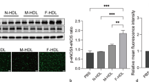 Lectin-like oxidized low-density lipoprotein receptor-1 (LOX-1) is the principal endothelial receptor for oxidized low-density lipoprotein (oxLDL) [20, 21]. When LOX-1 is translocated to the plasma membrane, it can bind oxLDL to initiate multiple intracellular signaling cascades that induce endothelial dysfunction [22, 23]. Additionally, it has been shown that LOX-1 is the receptor for oxHDL, mediating its actions on ECs [24, 25].