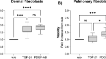 Skin fibrosis is linked to excessive dermal deposition of collagenous and non-collagenous extracellular matrix (ECM) components as a consequence of aberrant production and altered remodeling by fibroblasts [1, 2]. Pathologic hallmarks of dermal fibrosis include an increased number of αSMA-expressing myofibroblasts and the excess production and altered remodeling of collagenous ECM, leading to elevated tissue contraction and stiffness [3, 4]. As a classical effector molecule of fibrogenesis, transforming growth factor β (TGF-β) binds to its cognate receptor on fibroblasts, promoting fibroblast–myofibroblast transdifferentiation and contributing significantly to tissue fibrosis [5]. TGF-β1 is the isoform most commonly associated with skin fibrosis, as elevated levels of activated TGF-β1 are found in the systemic circulation of patients with fibrotic disease and TGF-β1 levels in skin lesions are correlated with the degree of skin fibrosis [6]. Additional pro-fibrotic mechanisms that could account for ECM alterations upon TGF-β1 stimulation are largely unknown.