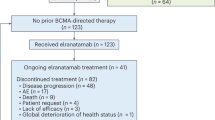 Part 2 of this study is ongoing to evaluate isatuximab 20 mg/kg as monotherapy or in combination with dexamethasone in patients with RRMM (NCT01084252). Isatuximab is also being investigated in combination regimens [34,35,36] and Phase 3 trials are underway; the ICARIA study has shown that addition of isatuximab to pomalidomide-dexamethasone improves the ORR and PFS, including in patients with adverse characteristics such as high-risk cytogenetics, heavy pretreatment, and renal impairment (NCT02990338) [35, 37,38,39,40]. Other Phase 3 trials are evaluating the addition of isatuximab to lenalidomide, bortezomib, and dexamethasone (RVd) in patients with newly diagnosed MM (NCT03617731 and NCT03319667), and carfilzomib and dexamethasone in patients with RRMM (NCT03275285).