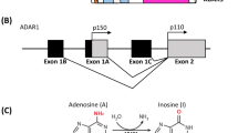 Recent data from whole-exome and whole-genome sequencing approaches revealed a complex genomic landscape for many cancer entities [1,2,3]. In addition to somatic mutations and alternative splicing, genetic information can also be altered by RNA editing. Generally, RNA editing is the posttranscriptional modification of RNA bases, with adenosine to inosine (A > I) being the most prevailing type of editing [4, 5]. As I is structurally a guanosine (G) analog, A to I editing can cause amino acid changes, retargeting of miRNAs and altered RNA splicing patterns. A to I editing occurs in almost any tissue from metazoan organisms and is catalyzed by adenosine deaminases that act on RNA (ADARs), which, in mammals, comprise ADAR1 (or ADAR), ADAR2 (or ADARB1) and catalytically-inactive ADAR3 family members [6]. ADAR1 has two isoforms, the full length isoform p150, which is driven from an inflammation dependent promoter and the constitutively expressed, N-terminally truncated isoform p110. Increased RNA editing was recently detected in many solid cancer entities compared with healthy tissue, which has been attributed to an increased expression of ADAR1 in cancer, particularly the inflammation dependent isoform p150 [7,8,9]. Global RNA editing measurements from hundreds of cancer samples revealed millions of editing sites, most of them occurring in transcribed noncoding Alu-sites. Alu elements are short, repetitive DNA stretches with more than one million copies distributed throughout the genome. Pairs of inverted copies of Alu elements are preferred targets for ADARs [10]. Consequently, editing of Alu elements has been used as an indicator for global editing activity [7, 8]. However, editing in coding regions has also been detected and some recurrent editing sites affecting coding regions were reported to influence cancer development and progression [11,12,13].