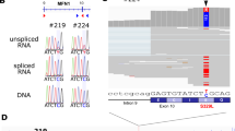 RNA editing in Alu repeats is a proxy for global RNA editing activity, but gives little information on recoding events, as those are mostly located outside Alu elements. In order to determine RNA editing in coding regions, we next screened for RNA-DNA single nucleotide differences (RDDs) from matched RNA-sequencing/whole-exome sequencing (WES) data from our 45 patients. Screening for differences in matched RNA/DNA pairs revealed a total of 80,150 RDDs in 45 samples. Similar to a previous report [22], our RDD analysis yielded all possible base changes in recoding and nonrecoding events (Fig. S1); however, RDDs present in Alu regions (6864 events) as determined by the UCSC repeat masker track, were mostly of the A > I type, consistent with the finding that A > I editing occurs predominantly in Alu regions (Fig. S1). Among all RDDs, we found between 196 and 686 A > I editing events per sample. The number of A > I editing sites correlated particularly with ADAR p110 expression irrespective of the IGHV mutation status (Fig. 1b) and with the number of unique editing sites in Alu regions particularly in IGHV mutated samples (Fig. 1c). Notably, ADAR levels, particularly isoform p110, were generally higher in IGHV unmutated CLL samples (Fig. 1d). From the total of 18,854 A > I RDDs from all 45 CLL, 3773 (20%) mapped to exonic regions of which 2773 (73.5%) resulted in amino acid changes (Fig. 1e). From the 2773 nonsynonymous editing events, we found a set of 19 editing sites confined to 14 genes that were recurrently edited in at least 5 out of 45 patients, with no apparent IGHV specific differences (Fig. 2a, supporting Table S4). These genes are associated with 55 diverse biological pathways (Fig. 2b).The recurrent editing sites were individually checked for ambiguity or misalignment using BLAST search and for artefacts using Integrative Genome Viewer (IGV, Fig. 2c). Except for editing of ZNF417 (chr19:58420940), we found all of these sites already described as A > I editing targets in published datasets [23,24,25], and they matched the consensus ADAR deamination motif with preference for underrepresentation of G bases at the −1 position and overrepresentation of G at the +1 position [26] (Fig. 2d). Of note, we did not observe apparent correlations of editing frequency with expression levels of the respective genes, except for FLNB, NEIL1, and PI4K2A editing, which showed a weak positive correlation with expression (Fig. S2).