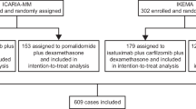 Attal M, Richardson PG, Rajkumar SV, San-Miguel J, Beksac M, Spicka I, et al. Isatuximab plus pomalidomide and low-dose dexamethasone versus pomalidomide and low-dose dexamethasone in patients with relapsed and refractory multiple myeloma (ICARIA-MM): a randomised, multicentre, open-label, phase 3 study. Lancet. 2019;394(Dec):2096–107.