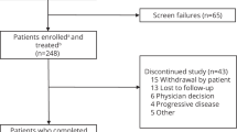 Of the 248 patients enrolled and treated, 225 (90.7%) were from Europe and 23 (9.3%) from the United States. As of the data cut-off date of May 21, 2021, representing a median follow-up of 11.01 months (range, 0.1–19.2), 107 (43.1%) patients had completed the study due to death, 122 (49.2%) patients were ongoing, and 19 (7.7%) patients had discontinued (Fig. 1).