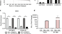 To investigate the potential clinical value of IGF2BP2 in lymphoblastic leukemia, we first explored IGF2BP2 expression by analysing human lymphoblastic leukemia cell lines in the Cancer Cell Line Encyclopedia database (CCLE, https://portals.broadinstitute.org/ccle) [21]. Compared with other lymphoblastic leukemia cell lines, such as B-cell acute lymphoblastic leukemia (B-ALL), and chronic lymphoblastic leukemia (CLL), IGF2BP2 was the most highly expressed in T-cell acute lymphoblastic leukemia (T-ALL) among 14 human lymphoblastic leukemia cell lines (Fig. 1A). To determine IGF2BP2 expression in T-ALL patients, the assessment of human leukemia databases (GSE48558) showed a significant increase in IGF2BP2 and IGF2BP3 expression in T-ALL cells compared with that in normal T cells, whereas YTHDC1, YTHDC2 and METTL16 were decreased; IGF2BP1 or other m6A modification enzymes were no significantly different (Fig. 1B, Supplementary Fig. 1A and Supplementary Fig. 2). In addition, we analyzed primary bone marrow mononuclear cells from T-ALL patients and controls. IGF2BP2 mRNA expression (Fig. 1C, left) significantly increased in T-ALL (n = 9) compared to that in the control (n = 6), but not in IGF2BP1 and IGF2BP3 (Supplementary Fig. 1B). Consistently, the T-ALL (n = 3) patients had a higher IGF2BP2 protein expression (Fig. 1C, right & Supplementary Fig. 1C) than the control patients (n = 3). Moreover, we evaluated m6A modification enzymes expression in different molecular subtypes of T-ALL from PeCan database and NCI TARGET database (phs000464). IGF2BP2 displayed higher expression levels in HOXA, KMT2A and NOTCH1 mutation subtypes compared with other T-ALL subtypes (Supplementary Fig. 3). Taken together, we identified a global upregulation of IGF2BP2 in T-ALL.