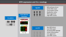 The gene expression comparison of the two CLL groups to normal B cells allowed us to highlight distinctive molecular characteristics for tCLL. Intriguingly, our data suggest possible mechanisms that could contribute to regulating the BCL3 abundance in tCLL, such as the GSK3β-mediated protein degradation pathway [53, 54] and miR-181a targeting BCL3 [55,56,57,58,59]. The GSK3β-mediated protein degradation is supported by the GSK3B expression level, which was very low in tCLL. Regarding miR-181a-mediated regulation, the high BCL3 abundance in tCLL matched with a lower miR-181a expression compared to B cells. Interestingly, tCLL displayed a specific upregulation of PAK1, previously shown to promote proliferation and sustain ibrutinib resistance in CLL.