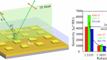 We fabricate a sample (see the right panel in Fig. 5a for its SEM image) and experimentally demonstrate all of the above predictions. We first measure the reflectance spectra of our sample under illumination by TE- and TM-polarized light at different incident angles and depict the results as open circles in Fig. 5c, d (see Fig. S14 for more experimental and simulated results). Excellent agreement is found between the experimental and simulation results. In addition, the θ dependences of the fr, \(\Gamma _i\), and \(\Gamma _r\) of our meta-device for both TE and TM polarizations are in good agreement with our theoretical analyses (see Fig. S15 in Supplementary Information).