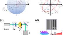 By adjusting n, an equivalent azimuthal-quadratic phase coefficient l0/n2 is realized. According to Eq. (13), the detectable mode range is proportional to l0/n2, while the resolving power is inversely proportional to l0/n2. With l0/n2 decreasing, the mode resolving power for superimposed vortices increases but at the sacrifice of decreasing the detectable mode range. As an example, for a modified phase mask with n = 3 (Fig. S19A), the resolving power increases to Δl = 2, while the detection range shrinks to within ±6 orders (Fig. S19B, C). Therefore, the coefficients l0 and n should be selected according to the requirements of the detection range and resolution in practical applications. Details are presented in Section 13 of the Supplementary file. In practical applications, we can realize a mode resolving power of Δl = 1 for a modified phase mask with n = 3 by coding the adjacent modes into opposite spins (e.g., \(\left| {\sigma _ + } \right\rangle \left| { - 2} \right\rangle\), \(\left| {\sigma _ - } \right\rangle \left| { - 1} \right\rangle\), \(\left| {\sigma _ + } \right\rangle \left| 0 \right\rangle\), \(\left| {\sigma _ - } \right\rangle \left| { + 1} \right\rangle\), \(\left| {\sigma _ + } \right\rangle \left| { + 2} \right\rangle\)). In addition, our results reported here may have many important applications in not only the measurement of both the spin and angular momentum but also the detection of both phase and polarization singularities. In these scenarios, an isolated vortex mode is generally investigated.