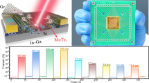 where η is the external quantum efficiency, λ is the wavelength, q is the elementary charge, h is the Planck constant, c is the speed of light, k is the Boltzmann constant, T is the photodetector temperature, and \(R_{{{\mathrm{0}}}}\) is the zero-bias resistance. From this, \(D_0^ \ast\) of the MWIR photodetection at 1200 K blackbody is calculated to be 1.78 × 109 cm Hz1/2 W−1.