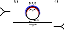 where a and b are width and depth of the rectangular waveguide respectively, ε is dielectric constant, μ is magnetic permeability. The voltage driving Opto-Resistive RAM Switch is provided by electrical control unit, whose circuit constitution is given by Fig. 4b. Positive (V1) and negative (V2) power supplies power the Opto-Resistive RAM Switch through a reversed switch-pair, constituted by a PMOS transistor (T1) and a NMOS transistor (T2), after a specified RC delay (τ = R1C1, where τ is RC time constant). Next, it is followed by a trans-impedance amplifier (U1) to convert current into voltage, a hysteresis comparator (U2) to judge the state of Opto-Resistive RAM Switch (low or high resistance state), and a voltage reverser (U3). Initially increasing voltage VC1 is applied to Opto-Resistive RAM Switch with T1 on and T2 off, and while the current of Opto-Resistive RAM Switch (IORS) suddenly increased due to the Opto-Resistive RAM Switch switching under illumination, output voltage of U3 reverses and induces T1 off and T2 on. In this case, VC2 starts to be pulled down by V2. Besides, simultaneously, another route generates a pulse activated by reversed output of U3 through a specified RC delay (τ = R7C2) and a comparator (U4). This pulse opens one transistor switch (T3) within the pulse time to “read” the maximum voltage of VC1 (VSET) using a voltage follower (U5) and this VSET is applied back to PCM on one arm of MZI to modulate the light go through the main route. The electrical modulation of MZI can be calculated as