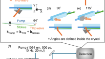 where kΩ is the wavevector at the THz frequency, Ω, and kω and \({{{\boldsymbol{k}}}}_{\omega - {{\Omega }}}\) are the wavevectors at the optical frequencies, ω and \(\omega - {{\Omega }}\), respectively.