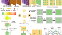 Figure 1a illustrates the fabrication steps of the single-crystalline MPs array. We previously reported a fabrication process for the pre-patterned SiO2 substrate through surface functionalization10, which can generate a hydrophilic area array on a hydrophobic substrate surface. Here, we modified this method and adopted it to various substrates for hydrophilic patterns, including metal electrodes, indium tin oxide (ITO) film, and polyethylene glycol terephthalate (PET) substrate (Fig. S1). The precursor solution was restricted in the hydrophilic areas of the pre-patterned substrate (target substrate) in the drop-casting process and then it was confined by a hydrophobic glass (confinement substrate) in the vertical direction (Fig. 1a). The gap between the two substrates is fixed at around 20 μm (Fig. S2). Subsequently, an antisolvent-assisted crystallization strategy was adopted to improve the crystalline quality. The growth of perovskite crystals was monitored, showing that with the extraction of the contact line, the square-shaped perovskite MPs were formed in the center of the regular domain arrays (Fig. S3). Owing to the hydrophobic surface of the top confinement glass, these MPs were located on the target substrate with a well-aligned customized pattern (detailed see Method).