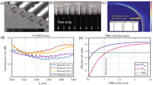 for silica fibres with nr = 1.44, we estimate the FWHM of \({\delta }_{11}^{(12)}(z)\) as \({z}_{FWHM} \sim 0.5{(\lambda R)}^{1/2}\). At λ ~ 1.55 µm and R ~ 30 mm of our experiment, we have zFWHM ~ 100 µm. From Eqs. (5) and (8), we find that the FWHM of the CWL, depending on the value of λ11 − λ12, is between zFWHM and 2zFWHM which is only in qualitative agreement with the microresonator FWHM zFWHM ~ 250 µm found from experimental data in Fig. 3c and d.
