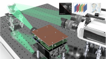 A ceramic plate with a size of 300 × 300 mm2 and the peak-valley difference less than 0.005 mm is used as the measured object. The plate is placed at 14 different positions and measured one after another. In order to reveal possible spatial variation of the system performance, two ROIs are defined for analysis, one at the center of the image (center ROI) and the other near the lower-left corner of the image (corner ROI). The sizes of both ROIs are limited to 100 × 100 pixels. The fringe projection, fringe capturing, and phase calculation follow Validation of the phase noise models. The optimal three-frequency method49 is adopted for phase retrieval and unwrapping, where the fringe periods from low to high are \({T}_{0}=21\) pixels, \({T}_{1}=700/33\) pixels and \({T}_{2}=70/3\) pixels. Then \({u}^{p}\) is calculated by Eq. (16) and \(\left({x}^{w},{y}^{w},{z}^{w}\right)\) is calculated from Eqs. (2), (3) and (7). For clarity, we denote the obtained 3D point cloud as \(\left({x}_{0}^{c},{y}_{0}^{c},{z}_{0}^{c}\right)\). The point cloud data in each ROI are fitted into a plane as