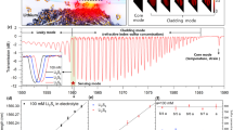 In recent years, optical fiber sensors have presented a high degree of miniaturization and a relatively simple-to-implement for a variety of hard-to-access environments18. Optical fiber sensors, with a diameter less than 0.2 mm, can be embedded into batteries near the surface of the battery electrodes, ensuring minimal disruption to battery operation. They offer high sensitivities and fast responses to the various key parameters of the batteries (temperature, pressure, strain, refractive index of the electrolyte and gases, and their compositions) by interrogating the light’s wavelength, intensity and polarization19,20,21,22. The initial study of real-time temperature measurements of batteries using optical fiber sensors, was pioneered by Pinto’s group23. Subsequently, Tarascon’s group successfully tracked the solid electrolyte interphase (SEI) formation and structural evolution by simultaneously measuring the internal temperature and pressure of commercial cell using a fiber Bragg grating (FBG) and a micro-structured optical fiber24. And Huang’s team employed FBG sensors implanted into lithium–sulfur cells for accurate estimation of the cathode stress and its evolution. The results indicate a close correlation between stress evolution and the characteristics of cathode structure and volume changes25. More recently, significant progresses have been made in the chemical and electrochemical optical fiber sensing methods, by using TFBG sensor26,27,28, hollow-core fiber sensor, and infrared optical fiber evanescent wave spectroscopy29. These methods enable in situ monitoring of electrolyte–electrode chemistry, which significantly enhanced the comprehension of battery state of charge, electrolyte composition and aging and safety risk assessment. For example, Euser’s group embedded a novel hollow-core optical fiber probe inside a battery, and monitored the evolution of electrolyte species by Raman spectroscopy to reveal changes in the lithium-ion solvation dynamics30. In summary, researchers are extensively engaged in the pursuit of advanced tools capable of measuring physical, chemical, and electrochemical parameters with high temporal and spatial resolution within batteries and during their operation. This concerted effort aims to enhance our comprehension of the fundamental electrochemical processes. Simultaneously, it holds the potential to yield practical systems deployable for monitoring installed systems and providing valuable insights for maintenance and replacement schedules.