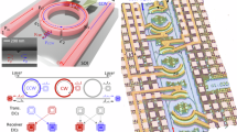 The sample was fabricated with a combination of electron-beam lithography and inductively coupled plasma etching, followed by plasma enhanced chemical vapor deposition to cover the entire sample with a 1-μm-thick layer of SiO2. Scanning electron microscope (SEM) images for the DCWs in one of the fabricated samples are shown in Fig. 4a–d, where the zoomed-in images in Fig. 4b–d illustrate the regions bounded by the rectangles marked with yellow lines in Fig. 4a, labeled as 1, 2 and 3, respectively. Grating couplers were placed on both sides of DCWs for transmission measurement. The control device without the DCWs is introduced to evaluate the transmittance at different ports by comparing the loss difference between the fabricated sample consisting of DCWs and the control device without DCWs (see more details on fabrication and measurement in Supplementary Note 8).