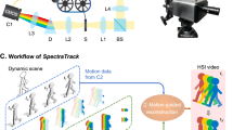 For the algorithm of spectral datacube reconstruction, we currently employ convex optimization and Wiener filtering. More advanced tools, such as deep learning27,47,48,49, hold the potential to further enhance the spectral resolution and reconstruction accuracy. Meanwhile, the PSFs can be designed to exhibit nearly achromatic characteristics by optimizing the azimuth pattern of the LC-SLENS in a global way or end-to-end manner50. Together with other off-the-shelf methods like deconvolution with total variation regularization or Richardson-Lucy deconvolution, better imaging quality with the LC-SLENS can be achieved (Supplementary Note 3). We note that the emerging end-to-end joint optimization workflow50,51 could also be applied to our framework to enhance the spectral singlet’s efficacy and improve the overall hyperspectral imaging performance of the system (Supplementary Note 3). Lastly, we leveraged liquid crystals as a proof of concept to demonstrate the spectral lens, but the proposed framework can be further expanded upon through other novel materials (e.g., phase change materials and lithium niobate) with versatile light controls.