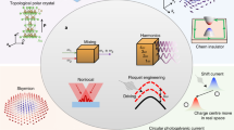 Polarization is one of the most important EM properties of dielectric materials. The essence of polarization is electron movement, manifested as displacements or rotation of electrons with respect to the centers of molecules/atoms in dielectrics or collective oscillation of free electrons in metals, which produces aligned dipole moments along the direction of external electric fields. Polarization is very fundamental in revealing the microscopic mechanisms of macroscopic EM properties of dielectrics1,2,3. For conventional dielectrics, their constituent particles include atoms, molecules, and others4,5,6. In general, without external electric fields, the contribution of these particles to macroscopic polarization vanishes due to thermal motion averaging. It is only under the influence of applied electric fields that particles align along the field direction and contribute to dipole moments that can give rise to macroscopic polarization intensity.