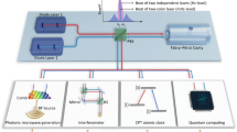 The essential element lying in the heart of optical metrology is the generation and control of coherent laser waves. Although significant advances have been made in recent years in the generation of high-coherence lasers, particularly in narrow-linewidth semiconductor lasers8,9,10,11,12, controlling laser waves for metrologic purposes remains fairly complicated. The realization of a complete metrologic functionality generally requires sophisticated photonic infrastructures external to the laser for manipulating the frequency, phase, power, polarization, and/or optical path of the laser wave. This complexity leads to the bulky nature of current metrological systems, which not only hinders system miniaturization but also limits the metrology performance. Taking the optical clock1 as an example, lasers are required to stably lock to certain atomic transition lines and/or to a reference cavity for proper operation. This is generally realized via the Pound–Drever–Hall (PDH) technique13,14 that requires electro-optic components for frequency modulation, acoustic-optic devices for beam deflection, and piezoelectric (PZE) means for delicate servo control of the laser cavity15,16, all of which can only be done external to the laser diode (Fig. 1b). The same complexity is inherited in an atomic quantum sensor17,18 or an optical quantum computing system19,20 whose operation also relies on precise laser accessing of atomic transitions.