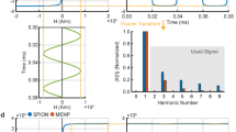 Our NV measurement scheme was based on AC magnetometry with a large bandwidth generally used from 1 kHz to 10 MHz and a \(10nT/\sqrt {Hz}\) sensitivity, as shown in recent experiments22,23. This magnetometry can also be applied to image signal above GHz signal24. Magnetic imaging was implemented by measuring the magnetic flux density projected in the direction of the NV axis (we denote this field component as BNV) at each pixel and moving the coil on the x–y plane with a fixed z height to construct the image. Note that the NV axis was in the direction of the straight line connecting the nitrogen atom and vacancy inside the diamond lattice (crystallographic <111> direction, see Fig. 4a, right inset). The microsolenoid and the diamond were aligned so that the axis of the NV center was in the y–z plane of the lab frame, as indicated in Fig. 4b.