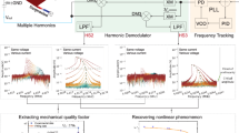 where \(\gamma ={\omega }_{0}/Q\) is the linewidth, \({\omega }_{0}\) is the natural frequency, \(Q\) is the quality factor, \(\alpha\) is the Duffing nonlinearity, \({F}_{0}\) is the driving force, \(\phi\) is the phase of the motion, and \(\delta\) is the phase set point of the PLL. The method of multiple scales can be utilized to capture the dynamics of the Duffing nonlinear resonator by introducing