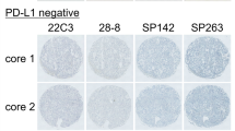 As the current study did not have clinical response information for PD-1/PD-L1 blockade, we could not determine the sensitivity and specificity (as well as positive and negative predictive values) of the individual PD-L1 assay. In efforts to evaluate the usefulness of the PD-L1 assay in stratifying samples according to different cutoff values, we used the 22C3 assay as the reference and calculated the proportion of accurately classified positive and negative samples by other three assays as an analogue for sensitivity and specificity, respectively. At a cutoff of tumor proportion score ≥ 1%, 52% and 98% of the samples were correctly classified as a positive case and a negative case by any one assay (28–8, SP142 and SP263) in comparison with the 22C3 assay, respectively (Fig. 2f). On the other hand, by using the combined positive score, 78–86% and 88–100% the samples were correctly classified as a positive case and a negative case, respectively.