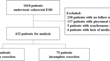 Lee EJ, Lee JB, Lee SH, Youk EG. Endoscopic treatment of large colorectal tumors: comparison of endoscopic mucosal resection, endoscopic mucosal resection-precutting, and endoscopic submucosal dissection. Surgical Endosc. 2012;26:2220–30.