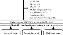 All resected specimens were formalin-fixed, sectioned, and stained with hematoxylin and eosin (H&E) in the conventional manner. Small tumors were entirely sampled histologically. Elastic stains were performed to evaluate the presence of pleural or vessel invasions in all cases. All the histological slides were reviewed by two pathologists (MRK and AY), who were blinded to patient information. All histological parameters were determined through a discussion between the pathologists reviewing the slides. The average number of tumor slides reviewed for each case was 3.3 (range, 1–20). According to the 2015 WHO classification, each tumor was classified using comprehensive histologic subtyping (five major histological patterns), and the percentage of each histologic component was recorded in 5% increments [1]. Histological grading was determined according to the 2004 WHO classification [14].