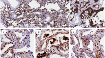 A lymphohistiocytic inflammatory infiltrate was patchily distributed in all cases. IHC studies revealed the presence of numerous CD163-positive macrophages, which were distributed in both interstitial and alveolar spaces. Occasionally, these CD163+ macrophages were found to contain engulfed neutrophils. Scattered CD8+ cells were also identified; no relationship between the number of CD8 cells and the severity of alveolar damage was observed (Figs. 2 and 4).
