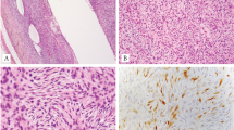 NCOA2 immunostain was positive in case 2, the only case tested. A previous study in soft tissue angiofibroma showed that NCOA2 (polyclonal; ITK Diagnostics BV, Uithoorn, The Netherlands) was positive not only in soft tissue angiofibromas but also in other spindle cell lesions without NCOA2 fusions, such as intramuscular myxoma, myxoid liposarcoma, myxofibrosarcoma, solitary fibrous tumor, schwannoma, gastrointestinal stromal tumor, etc., and therefore does not serve as a good screening marker [11].