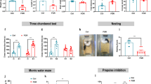 Learning and memory were assessed using the continuous alternations paradigm in the Y-maze (Grk3+/+ n = 19, Grk3−/− n = 20), novel object location memory (Grk3+/+ n = 12, Grk3−/− n = 14), novel object recognition (Grk3+/+ n = 13, Grk3−/− n = 13), rewarded alternations in the T-maze (Grk3+/+ n = 7, Grk3−/− n = 8), and the Morris Water Maze (Grk3+/+ n = 13, Grk3−/− n = 16). Anxiety was tested in the light-dark box (Grk3+/+ n = 13, Grk3−/− n = 13) and elevated-plus maze (Grk3+/+ n = 12, Grk3−/− n = 13). The open-field paradigm was used to assess locomotion, rearing and center activity (Grk3+/+ n = 20, Grk3−/− n = 25). Psychosis-like phenotypes were examined using novelty-induced hypermotility (Grk3+/+ n = 20, Grk3−/− n = 25), prepulse inhibition (PPI) (Grk3+/+ n = 19, Grk3−/− n = 20; vehicle n = 8 and IL-1β n = 9), and D-amphetamine-induced hypermotility (Grk3+/+ sal n = 7, Grk3+/+ D-amph n = 13 Grk3−/− sal n = 8, Grk3−/− D-amph n = 17). For details see Supplementary Information and Supplementary Table S1.