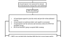 The intervention and the attentional-control placebo tasks were both structured as simple cognitive tasks, lasting 15 min and delivered by the clinical maternity team whilst participants were still in their hospital bed at ≤6 h postpartum (T1). Participants allocated to the intervention group completed a cognitive visuospatial task (i.e., the computer game Tetris) on a handheld gaming device (Nintendo DS) [19]. A 3-min training preceded the intervention, allowing participants to familiarise themselves with the game and to actively use mental rotation while playing Tetris [19, 29]. Given the hospital setting, no additional memory reminder cue to the trauma was necessary, as the intervention took place in the same context where the trauma occurred [19]. Participants randomised to the attention-placebo control group were instructed not to sleep while keeping a written activity log (based on previous research [26]). They briefly reported the nature and duration of their activities (e.g., “being with baby, 10 min”, “lying on my bed, 5 min”, “reading messages on my phone, 7 min”). Both activities were done once important routine care procedures had been completed. Additional information on the scientific rationale for selecting this attention-placebo control task is provided in the published study protocol [29].