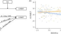 Regarding functional behavioral outcomes, we conducted linear regressions to assess the relationship between individual DLPFC activity estimates and working memory performance across sex groups. We separately testes the hit rate, reaction time, and the efficiency rate based on the N-back task responses including the COMT rs4633 genotype, and Dys Hap as categorical factors. Linear models revealed a significant negative association between the reaction time and DLPFC activity estimates in females with COMTMetCar and Dys + /− (r = −0.39; puncorr = 0.02), while a significant positive association between the reaction time and the DLPFC activity estimates (r = 0.37; puncorr = 0.05), and a negative association between the efficiency rate and the DLPFC activity estimates (r = −0.38; puncorr = 0.04) were found in males with COMTMetCar and Dys Hap + /−. Results are depicted in Fig. 5c and Fig. S3.