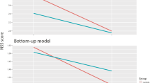 The present results demonstrated greater salience scores for the full model in schizophrenia patients than in healthy individuals. The data from the individual institutes consistently showed positive effect sizes, and the subsequent analysis across multiple institutes revealed that the overall effect was statistically significant. These results strongly support the previous findings of Yoshida et al. [19]. Larger salience scores indicated that the subjects tended to direct their gaze at image locations with higher bottom-up image feature salience according to Itti and Koch’s theory. Thus, our previous and present findings consistently suggest that perceptual salience in visual processing is affected in individuals with schizophrenia, consistent with the aberrant salience hypothesis of psychosis [1,2,3,4,5]. Similar findings were observed for the salience scores for the orientation feature, which showed the largest overall effect size. This result is also consistent with the findings of our previous study [19]. Interestingly, previous studies have demonstrated that orientation processing is affected in schizophrenia [38, 39] and that the early visual cortex is involved in changes in contextual modulation in schizophrenia [40,41,42], consistent with the present findings. Besides, the effect of orientation salience can explain impairment in contour integration in schizophrenia [39] because contour integration can be distracted by aberrant processing of orientation salience. Here, we found that the overall effect sizes of salience scores for the other low-level features were significantly different from zero, which was not detected in our previous study. Since the effect sizes for color and luminance salience were less than 0.5 and 0.2, respectively, these additional findings might be due to increased detectability resulting from increased sample sizes. However, these overall effect sizes were approximately half or one-fifth of the overall effect size of orientation salience. Thus, the present results suggest that, among the three low-level features, processing orientation salience is most severely affected in patients with schizophrenia. In our previous discussion [19], we have argued that processing for orientation salience and for luminance processing resemble those in the early visual cortex and lateral geniculate nucleus (LGN) and that processing in the early visual cortex might be affected in schizophrenia. The present findings are also in line with this argument.