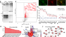 Next, we investigated whether inhibiting PV interneurons activity could restore the dysregulated protein levels seen in AD brains. Specifically, we focused on lysosomal and GABAergic synapse-related proteins previously found dysregulated in the subiculum (Figs. 2 and S2). Our analysis showed that PV-INs inhibition restored these protein levels to near-normal (Fig. 6B). To identify proteins involved in modulating Aβ pathology, we compared DEPs between AD and WT brains and found 45 proteins with opposite trends between hM4Di-treated and control groups. GO enrichment analysis linked these proteins to Aβ metabolic processes, including pathways for Aβ clearance and fibril formation (Fig. 6C and data file S3). Protein interaction networks revealed that APP and ApoE were central to the network, both of which are well-established key proteins involved in Aβ metabolism, including its production, aggregation, and clearance (Fig. 6D). Western blotting confirmed a significant reduction in APP protein levels after PV-INs inhibition, while APP mRNA levels remained unchanged (Fig. 6E–G). Immunohistostaining further showed that APP reduction occurred in YFP-negative neurons, indicating that the effect on APP was not within PV-INs but rather surrounding neurons (Fig. 6H, I). PV knockdown similarly reduced APP in surrounding neurons, suggesting a consistent mechanism across different interventions (Fig. 6J, K). This reduction in APP was also observed in the visual cortex, a region connected to the subiculum, following both PV inhibition and knockdown, indicating that subicular PV-INs activity impacts broader cortical networks (Fig. S7E–H). Furthermore, we investigated the post-translational modification of APP and observed a significant increase in K63-linked polyubiquitination of APP following PV-INs inhibition (Fig. 6L, M). K63-linked ubiquitination is widely recognized to participate in endo-lysosomal trafficking and lysosome-associated degradation pathways [21]. This observation is consistent with the proteomic findings of reduced APP abundance and alleviated lysosomal dysfunction following PV-INs inhibition.