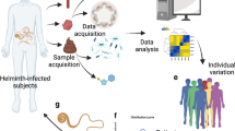 The gut is well recognized in human physiology as an immune organ that is key to regulating the health of the whole body. This point is clearly observed with the higher incidence of skin diseases appearing in patients suffering from gut inflammatory conditions such as coeliac disease, Crohn’s disease, and ulcerative colitis35. Also, there is emerging evidence for a gut-brain axis associated with the regulation of host metabolism, neurodevelopmental disorders, neuroinflammation, and stress levels36,37,38,39. Investigations of the molecules secreted by gut dwelling adult parasites have revealed they can bind host cell receptors and mediate functional host responses, including induction of TREG cells, altering DC activity or blocking initiation of type 2 immune responses40,41,42,43,44.