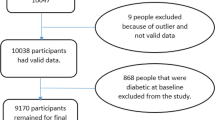 Height was measured in centimetres using a wall-mounted measuring tape and weight was measured in kilograms using a digital scale (SECA, model 7,822,321,009; Vogel and Halke, Germany). BMI was defined as the weight in kilograms divided by the square of height in metres (kg/m2). BMI was categorised into underweight (BMI < 18.5 kg/m2), normal (18.5 ≤ BMI < 25 kg/m2), overweight (25 ≤ BMI < 30 kg/m2) and obese (≥30 kg/m2) according to BMI cut-off points9. BP measurements were taken using a digital automatic blood pressure monitor after the participant was seated for at least 5 min and an average of two measurements were taken as the blood pressure value for that individual. Hypertension was defined as a systolic BP of 140 mmHg or greater, diastolic BP of 90 mmHg or greater, or use of antihypertensive medication25. A standardised questionnaire was conducted for all participants in English or their mother tongue (Malay or Tamil) by trained interviewers. DM was defined as self-reported physician’s diagnosis, use of insulin, use of oral hypoglycaemia medications or random plasma glucose ≥200 mg/dL or HbA1c ≥ 6.5% (48 mmol/mol)26, 27. We defined type 1 DM as those who developed DM before the age of 30 years. For the incident analysis, since we excluded those with DM including those who developed DM before the age of 30 years (n = 8), we assume that those who developed DM at follow-up fall under type 2 DM, i.e., age of onset after 30 years. Incident DM was defined as onset of DM at the follow-up among those who were free of DM at baseline.