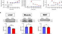 Others have suggested that reduced BCAA oxidation in adipose tissue and liver may induce BCAA overflow to skeletal muscle, driving its BCAA oxidation there [23, 84, 131,132,133]. Since skeletal muscle has a high capacity to oxidize BCAA, it could be postulated that muscle functions as the metabolic sink for impaired BCAA oxidation in adipose tissue and liver [132]. Interestingly, a recent study using a heavy isotope steady-state infusion of BCAA, showed a shift in BCAA oxidation from adipose tissue and liver toward skeletal muscle in obese, insulin resistant mice [84], consistent with the finding that BCKD enzyme activity in liver and adipose tissue is downregulated in animals with obese/insulin-resistant or diabetic states [75, 103, 111, 112, 134,135,136,137,138]. This was also confirmed by She et al. who found that BCKD activity was decreased in adipose tissue.