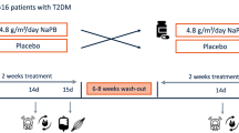 Sodium phenylbutyrate (NaPB) is a commonly used medication for the treatment of patients with urea cycle disorders [207]. NaPB is an aromatic fatty acid that is converted in vivo by β-oxidation into phenylacetate followed by conjugation with glutamine to form phenylacetylglutamine, which is excreted in the urine [208]. Via this mechanism NaPB act as an ammonia scavenger in patients with urea cycle disorders [209]. Interestingly, it has been demonstrated in mice [210] and human cells [208] that NaPB, as BT2, also directly enhance BCAA catabolism through stimulation of the BCKD complex by preventing the phosphorylation of BCKDK (Fig. 3). Holecek et al. [211] showed that in vitro and in vivo administration of NaPB resulted in augmented BCAA catabolism resulting in reduced BCAA levels in plasma and muscle [211]. In another in vitro study in mice, NaPB treatment resulted in lower BCAA concentrations paralleled by improved insulin-stimulated glucose uptake [189, 212] via an improved insulin signaling in skeletal muscle cells [189]. This result was confirmed in a diabetic mouse model showing substantial improved glucose metabolism upon NaPB treatment [213]. These data postulate that NaPB-induced lowering of BCAA levels alleviate the inhibition of insulin signaling leading to an improved glucose uptake, in which skeletal muscle plays an important role.