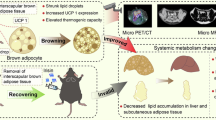 Obesity occurs when energy balance is altered and energy intake surpasses expenditure, the latter of which is influenced by basal metabolic rate, physical activity, and thermogenesis [1]. Excess energy from nutrients is stored primarily in white adipose tissue (WAT), leading to higher total body mass. Brown adipose tissue (BAT) regulates energy homeostasis and transforms fat into heat. Uncoupling protein 1 (UCP1) catalyzes to mitochondrial proton conductance and protection against hypothermia and obesity [2]. Notably, promoting the function of classic brown fat or the browning of WAT (known as brown-like adipocytes or beige adipocytes) help protect against obesity and its metabolic complications in animal studies [3, 4]. Therefore, promoting BAT and/or beige WAT function has potential as a therapeutic approach to mitigate the current obesity epidemic.