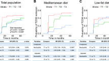 This work was conducted within the framework of the CORDIOPREV study. The rationale, methods, and baseline characteristics have been reported by Delgado-Lista et al. [14, 15] and provided in Clinicaltrials.gov (NTC00924937). The CORDIOPREV study is an ongoing prospective, randomized, single-blind, controlled dietary intervention trial in 1002 patients with coronary heart disease, at high cardiovascular risk. The inclusion/exclusion criteria have been described in detail elsewhere [15]. Briefly, the inclusion criteria were: patients with acute coronary syndrome (unstable angina, acute myocardial infarction) and high-risk chronic CHD according to the following criteria: (A) acute myocardial infarction; (B) unstable angina; and (C) chronic high-risk ischemic heart disease. The exclusion criteria were: (a) patients <20 years of age or >75 years old, or with a life expectancy <5 years; (b) severe heart failure, NYHA functional class III or IV, with the exception of self-limited episodes of acute heart failure at the time of the acute ischemic event; (c) severe left ventricular systolic dysfunction (with ejection fraction ≤35%); (d) patients with restricted capacity to follow the protocol: those unable to follow the prescribed diet for whatever reason, due to personal or family circumstances; (e) risk factors which are severe or difficult to control (such as hypertension and diabetes, where there is organ involvement that limits their survival, chronic renal failure and disabling clinical manifestations of cerebral atherosclerosis); (f) chronic diseases unrelated to coronary risk; and (g) participants in other studies.