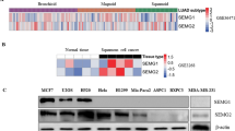 The semaphorin family includes seven subfamilies, all of which contain a characterized SEMA domain. The semaphorin family were initially identified as ligands that control the guidance of axons by directly binding to plexin, thus activating plexin-derived signaling6,7,8,9. Recently, several studies have demonstrated that the semaphorins have a role in tumor progression. For example, semaphorin 4D can act as a pro-tumorigenic factor that induces tumor angiogenesis in head and neck squamous cancer cells10. In contrast, several semaphorins, such as the semaphorin 3 subfamily, function as anti-tumorigenic factors by inducing apoptosis and inhibiting cell proliferation in lung cancer4,11,12, breast cancer5, and skin cancer cells13.