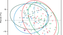 Taxonomic profiles of the gut microbiota among infants in both groups are shown in Fig. 1. The relative abundances of bacterial phyla and genera were compared between groups and over time using stacked vertical bars (Fig. 1a, b). Genera that significantly differed in relative abundance between groups included Bifidobacterium (1 week after intervention and at 1 month of age, q < 0.05) and Enterobacteriaceae of an unknown genus (1 month of age, q < 0.05). An increase in abundance of Bifidobacterium over time was observed with B. infanits M-63 administration during the intervention period, accompanied by a decrease in the abundance of Enterobacteriaceae (Table S2). Results for bacterial phyla and genera other than Bifidobacterium and Enterobacteriaceae are also shown in Table S2.