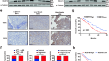All data were analyzed by SPSS 22.0 (SPSS, Inc. Chicago, IL, USA). Data from at least three independent experiments are expressed as the means ± SDs. The general linear model repeated measures variance analysis was performed to determine significance in MTT assays and tumor growth, one-way analysis of variance was performed to determine significance among multiple groups, and Student’s two-tailed t test was performed to determine significance between two groups. The Wilcoxon rank-sum test was used for analyzing nonparametric data. Correlations between gene expression levels were elucidated by Spearman’s rank correlation test or the kappa consistency test. Correlations between clinicopathological characteristics and gene expression levels were investigated by the chi-square test. Correlations between gene expression and overall patient survival were detected by log-rank tests of Kaplan–Meier survival curves. A Cox proportional hazards regression model was used for univariate and multivariate survival analyses. All statistical tests were two-sided, and a P value of < 0.05 was considered to be statistically significant. *P < 0.05, **P < 0.01, and ***P < 0.001.