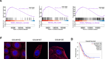 To further validate the effect of GOLM1 on macrophages infiltration and PD-L1 expression in HCC tissues, based on the immunostaining scores of GOLM1, the enrolled 60 patients were divided into GOLM1-low (score 0-1) and GOLM1-high (score 2-3) subgroups, and their PD-L1, CD8, and CD68 expressions were evaluated, respectively (Fig. 1e and Supplementary Fig. S1e). Consistent with the above results, a markedly increased level of PD-L1 and abundant CD68+ macrophages were observed in HCC with high GOLM1 compared to those with low GOLM1, whereas no significant difference was detected in CD8 expression between the two groups (Fig. 1e). We also used Western blot to analyze the expression levels of GOLM1 and PD-L1 in human HCC tissues from 44 patients. According to the ratio of GOLM1 or PD-L1 to GAPDH, a significantly positive correlation was established between GOLM1 and PD-L1 (Fig. 1f). Taken together, these findings suggested that the overexpression of GOLM1 may contribute to the immunosuppressive microenvironment in HCC and immune-escape of tumor cells.