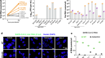 Calu-3 or HeLa-ACE2 cells were treated with indicated drugs, followed by SARS-CoV-2 infection. At 24 h (Calu-3) or 48 h (HeLa-ACE2) post infection, supernatants were collected and subjected to RNA extraction using Direct-zol RNA MiniPrep kit (Zymo research, CA, USA) according to the manufacturer’s instructions. Viral copy numbers were measured by RT-PCR using primers and probes targeting the SARS-CoV-2 N gene. The reference standard was serially diluted by tenfold from 1 × 109 copies to 1 × 104 copies. PCR amplification procedure was 50 °C, 15 min, 95 °C, 3 min; 95 °C, 15 s, 60 °C, 45 s, 50 cycles, and data were processed by Bio-Rad CFX Manager software. The primer sequence specific for SARS-CoV-2 N was available from J.W. upon request.