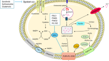 The term ferroptosis was coined by the Stockwell laboratory in 2012 based on the three major research areas that provided a foundational understanding of ferroptosis.: the control of ROS,46,47 the mechanisms of amino acid and lipid metabolism,48,49,50 and the regulation of iron2 (Fig. 1). Iron accumulation and LPO trigger ferroptosis, resulting in plasma membrane rupture.51 The initiation of ferroptosis requires two key signals, namely, the accumulation of free iron and the inhibition of defense systems, mainly the solute carrier family seven members 11–glutathione–glutathione peroxidase 4 (SLC7A11–GSH–GPX4) system.52 The activation of ferroptosis indicates a delicate imbalance between ferroptosis-promoting factors and defense systems. When the former factors significantly override the latter antioxidant defense systems, lethal accumulation of lipid peroxides on cellular membranes leads to membrane rupture and results in ferroptosis-related cell death3,6 (Fig. 2). Currently, the main ferroptosis defense systems constitute the SLC7A11–GSH–GPX4 system,6,53 the GTP cyclohydrolase 1–tetrahydrobiopterin (GCH1–BH4) system,54,55 the ferroptosis suppressor protein 1–ubiquinol (FSP1–CoQH2) system,56,57 the dihydroorotate dehydrogenase–dihydroubiquinone (DHODH–CoQH2) system,58 and the O-acyltransferase domain containing 1/2–monounsaturated fatty acids (MBOAT1/2–MUFA) system.59 Many key components of the ferroptosis pathway, e.g., the principal proteins and enzymes engaged in the induction and inhibition of ferroptosis, are transcriptionally controlled by NF-E2 p45-related factor 2 (Nrf2), the transcription factor encoded by NFE2L2.60,61,62,63,64 Nrf2 and Kelch-like ECH-associated protein 1 (KEAP1), which is the principal negative regulator of Nrf2 and an E3 ligase adaptor, are critical for maintaining metabolic, redox and protein homeostasis.65,66 Nrf2 is involved in regulating the transcription of enzymes responsible for GSH biosynthesis, such as glutamate-cysteine ligase catalytic subunit (GCLC), glutamate-cysteine ligase modifier subunit, glutathione disulfide reductase, and GSH synthetase (GSS), which support GPX4-mediated suppression of ferroptosis by increasing and maintaining the GSH level. Other downstream targets of Nrf2 include SLC7A11, GPX4, and NAD(P)H-quinone oxidoreductase 1, as well as iron metabolism proteins, such as ferritin light chain (FTL), ferritin heavy chain 1 (FTH1), ferroportin-1 (FPN1) and heme oxygenase-1 (HO-1), all of which are directly relevant to ferroptosis.60,61,62,63,64,67,68,69