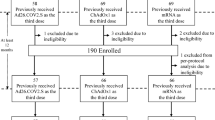 Participants were enrolled in the trial in Chengdu, Sichuan Province, China, up to November 18, 2022. Eligible participants were healthy adults (≥18 years) who had received three doses of inactivated COVID-19 vaccine at the latest 6 months prior to the screening visit. Exclusion criteria included positive nucleic acid test result for SARS-CoV-2 at screening, axillary temperature exceeding 37.3 °C, any previous COVID-19 or infection of SARS-CoV-2 or other coronaviruses (eg., MERS-CoV or SARS-CoV). Also excluded were individuals allergic to any vaccine component and women having positive urine pregnancy test results. All criteria for inclusion and exclusion are listed in Table S4. Written informed consent was signed by every participant upon enrollment.