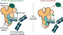 The shedding of S1 protein into the supernatant was assessed by Western blot assay. Briefly, ~2 × 105 293T cells transfected with prototype S expression vector were treated with testing antibodies (N235 or CV3-13 at 1, 10, and 100 μg/mL) or PBS for 1 h at 37 °C. Subsequently, the S1 protein-containing supernatant was centrifuged to remove cell debris, separated on a 10% reducing SDS–PAGE gel, and then transferred onto polyvinylidene fluoride membranes. Immunoblotting was performed using an anti-SARS-CoV-2 S1 polyclonal antibody (1:2000 dilution; Sino Biological, Cat#40150-T62) followed by incubation with horseradish peroxidase (HRP)-conjugated goat anti-rabbit secondary antibody (1:10000 dilution; Gene-Protein Link, Cat# P12S12S).